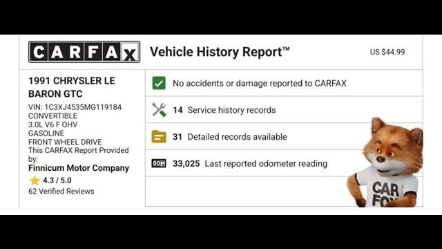 LOW MILEAGE '91 CHRYSLER LE BARON CONVERTIBLE - Stylish Cruising in Claret Red!