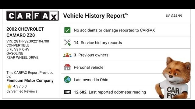 ULTRA LOW MILEAGE 2002 CAMARO Z28 CONVERTIBLE - Bright Rally Red Muscle with V8 Power!