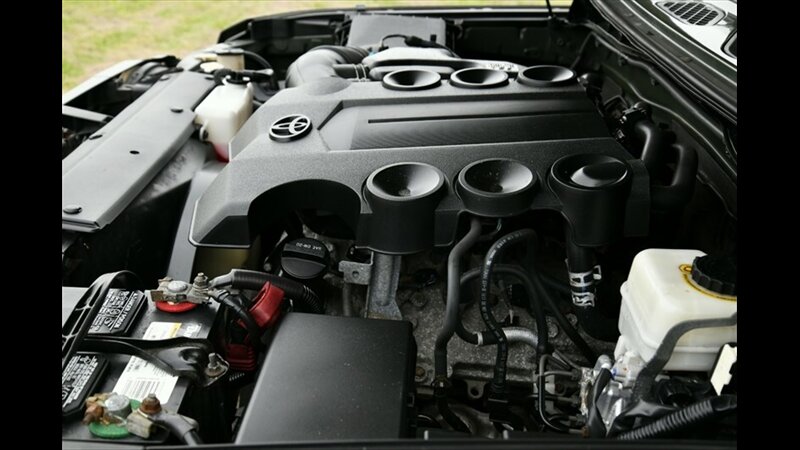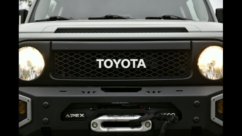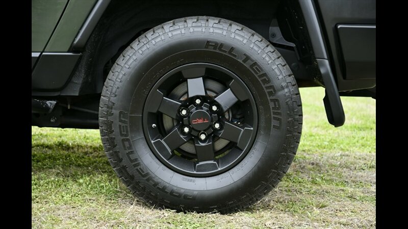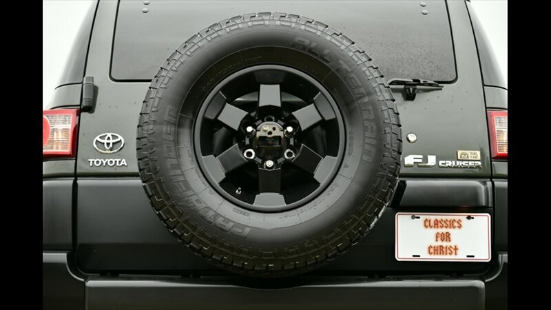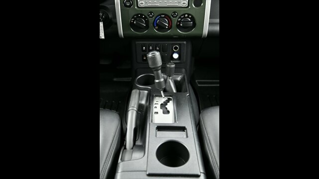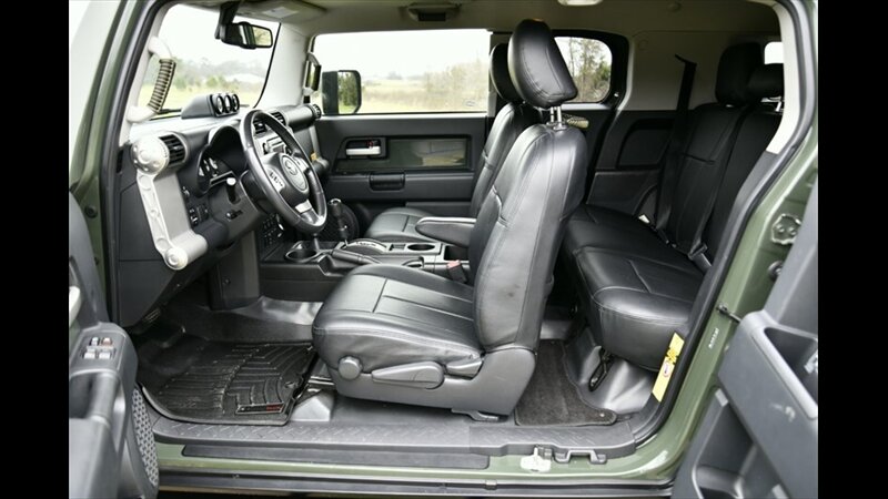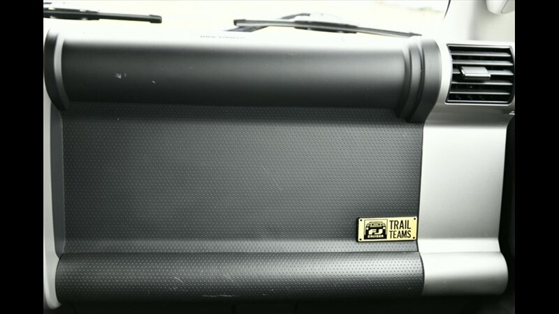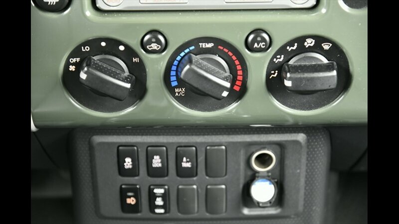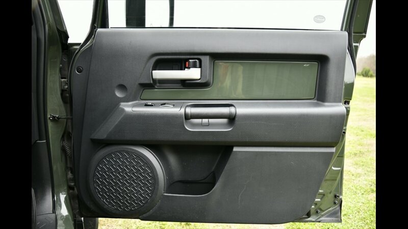 The Toyota FJ Cruiser is renowned for its robust 4x4 capability and distinctive retro styling. This model features a manual hi-lo 4WD selector for true off-road capability and a part-time 4WD system, along with a rear locking differential for enhanced traction in challenging conditions. The exterior boasts a rugged look with black fender lip moldings and bumpers, metallic door handles, and front and rear mudguards. Its signature side-hinged rear liftgate with a manual flip-up window provides easy cargo access.