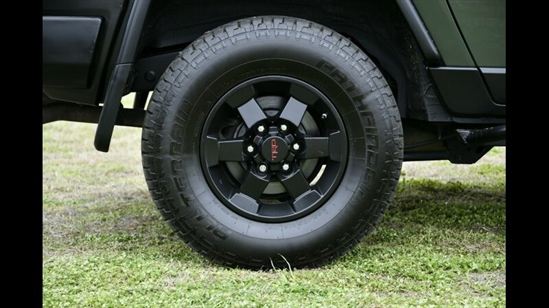 - Trails Teams Special Edition PackageIncludes army green exterior color including roof top, black bumpers, grille, door handles, power outside mirrors w/illuminated markers and rock rails, trail-tuned bilstein shock absorbers, electronically controlled locking reardifferential, active traction control (a-trac), remote keyless entry system, army green door trim and fabric seat inserts, floating-ball multi-information display with inclinometer, compass and outside temperature, cruise control, roof rack, auto-dimming rearview mirror w/ integrated backup camera monitor, JBL AM/FM 6-disc cd changer w/MP3/WMA playback capability, 11 speakers including subwoofer, XM radio(includes 90-day trial subscription), USB port w/ ipod connectivity, hands-free phone capability and music streaming via bluetooth wireless technology, leather-trimmed steering wheel, 115V/400W AC power outlet, TRD 16-in. 6-spoke special edition alloy wheels w/ BFGoodrich all-terrain P265/75R16 tires, wheel locks, daytime running lights (DRL), trail teams badge, rear window wiper, and rear privacy glass on rear side, quarter, and rear door windows.